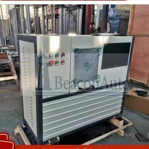 高速?gòu)澢D(zhuǎn)疲勞試驗(yàn)機(jī) 高速?gòu)澢D(zhuǎn)疲勞試驗(yàn)機(jī)用途及結(jié)構(gòu)特點(diǎn) 高速?gòu)澢D(zhuǎn)疲勞試驗(yàn)機(jī)用于檢定動(dòng)態(tài)扭矩傳感器,轉(zhuǎn)速及對(duì)應(yīng)輸出頻率的不確定度。本機(jī)采用松下小慣量伺服電機(jī)作為驅(qū)動(dòng)單元,外置高精度旋轉(zhuǎn)編碼器與主軸相連做為轉(zhuǎn)速傳感器,高速DSP+ARM,作為電機(jī)驅(qū)動(dòng)及編碼器采集的核心控制單元,保證高速低速時(shí)轉(zhuǎn)速控制的準(zhǔn)確性和平穩(wěn)性。 彩色觸摸屏實(shí)現(xiàn)顯示發(fā)出頻率,理論轉(zhuǎn)速,電機(jī)實(shí)時(shí)轉(zhuǎn)速,主軸轉(zhuǎn)速,并可根據(jù)需要設(shè)置,多級(jí)轉(zhuǎn)速,多級(jí)轉(zhuǎn)速可以自行執(zhí)行,從低到高,轉(zhuǎn)速到達(dá)后可以設(shè)置旋轉(zhuǎn)保持時(shí)間。數(shù)據(jù)自動(dòng)記錄。 1. 根據(jù)被測(cè)傳感器特點(diǎn),配置專門的磁性安裝支架,傳感器主軸采用頂尖式結(jié)構(gòu),后尾架可以前后移動(dòng),(可靠保證同軸度,)傳感器主軸旋轉(zhuǎn)采用磨床的加載 2. 夾具采用彈性前后夾頭夾持試樣,夾頭與主軸彈性筒夾連接,可實(shí)現(xiàn)精密配合,保證夾持試樣的徑向跳動(dòng)滿足航標(biāo)及國(guó)標(biāo)的要求。