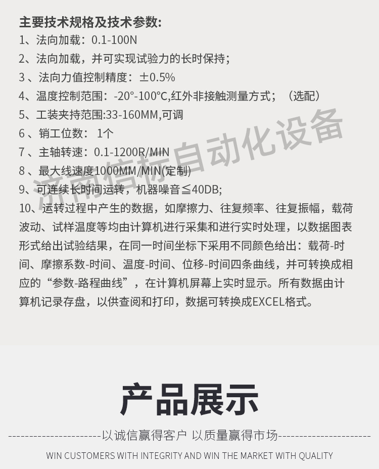 濟(jì)南信標(biāo)自動(dòng)化設(shè)備有限公司主要生產(chǎn):動(dòng)靜態(tài)萬能疲勞試驗(yàn)機(jī),接骨板彎曲試驗(yàn)機(jī),縫合線拉伸疲勞試驗(yàn)機(jī),髖膝關(guān)節(jié)磨損試驗(yàn)機(jī),電子萬能試驗(yàn)機(jī)、液壓萬能試驗(yàn)機(jī)、巖石三軸、四軸,電液拉力試驗(yàn)機(jī),材料試驗(yàn)機(jī),高低溫蠕變,高低頻疲勞,拉伸、扭轉(zhuǎn)、杯突等二十多個(gè)系列兩千多個(gè)的品種。