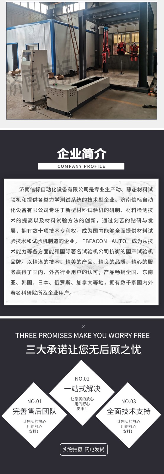 濟(jì)南信標(biāo)自動(dòng)化設(shè)備有限公司主要生產(chǎn):動(dòng)靜態(tài)萬(wàn)能疲勞試驗(yàn)機(jī),接骨板彎曲試驗(yàn)機(jī),縫合線拉伸疲勞試驗(yàn)機(jī),髖膝關(guān)節(jié)磨損試驗(yàn)機(jī),電子萬(wàn)能試驗(yàn)機(jī)、液壓萬(wàn)能試驗(yàn)機(jī)、巖石三軸、四軸,電液拉力試驗(yàn)機(jī),材料試驗(yàn)機(jī),高低溫蠕變,高低頻疲勞,拉伸、扭轉(zhuǎn)、杯突等二十多個(gè)系列兩千多個(gè)的品種。