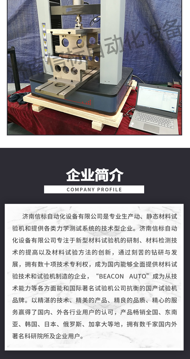 濟南信標自動化設(shè)備有限公司主要生產(chǎn):動靜態(tài)萬能疲勞試驗機,接骨板彎曲試驗機,縫合線拉伸疲勞試驗機,髖膝關(guān)節(jié)磨損試驗機,電子萬能試驗機、液壓萬能試驗機、巖石三軸、四軸,電液拉力試驗機,材料試驗機,高低溫蠕變,高低頻疲勞,拉伸、扭轉(zhuǎn)、杯突等二十多個系列兩千多個的品種。