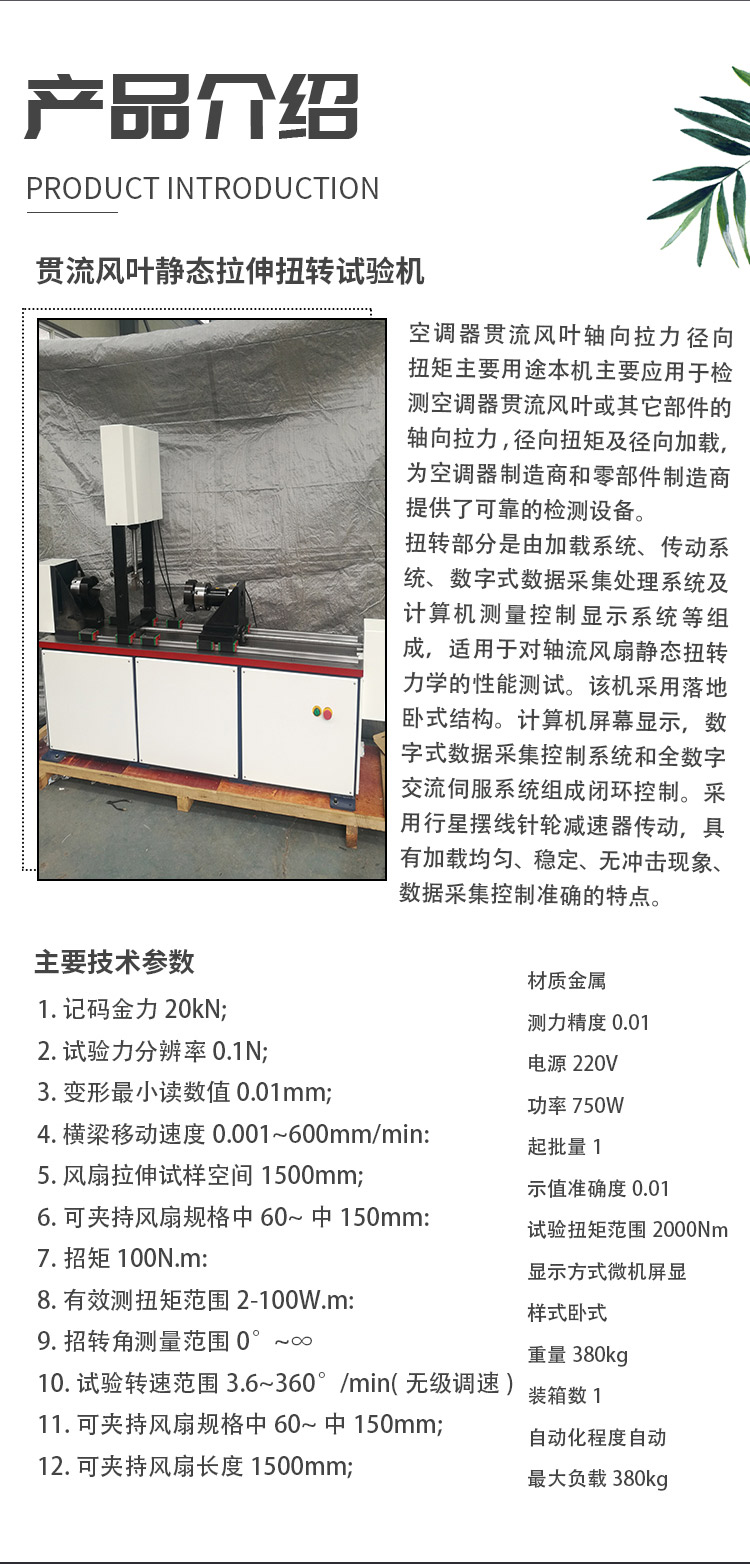 當(dāng)前位置:首頁 > 產(chǎn)品中心 > 貫流風(fēng)葉靜態(tài)拉伸扭轉(zhuǎn)試驗機 空調(diào)器貫流風(fēng)葉軸向拉力 徑向扭矩