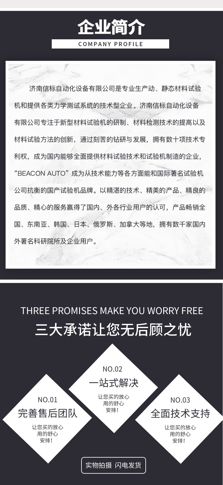 濟南信標自動化設(shè)備有限公司主要生產(chǎn):動靜態(tài)萬能疲勞試驗機,接骨板彎曲試驗機,縫合線拉伸疲勞試驗機,髖膝關(guān)節(jié)磨損試驗機,電子萬能試驗機、液壓萬能試驗機、巖石三軸、四軸,電液拉力試驗機,材料試驗機,高低溫蠕變,高低頻疲勞,拉伸、扭轉(zhuǎn)、杯突等二十多個系列兩千多個的品種。