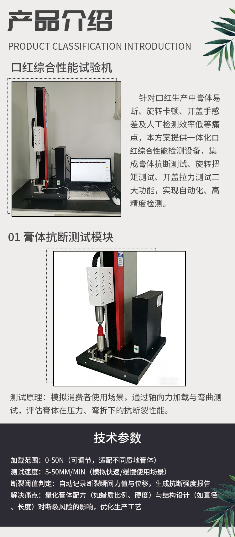 口紅綜合性能試驗機 膏體抗斷測試 旋轉(zhuǎn)扭矩測試 開蓋拉力測試