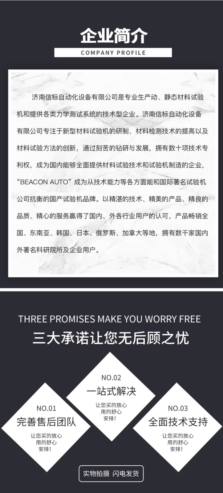 濟南信標自動化設備有限公司主要生產:動靜態(tài)萬能疲勞試驗機,接骨板彎曲試驗機,縫合線拉伸疲勞試驗機,髖膝關節(jié)磨損試驗機,電子萬能試驗機、液壓萬能試驗機、巖石三軸、四軸,電液拉力試驗機,材料試驗機,高低溫蠕變,高低頻疲勞,拉伸、扭轉、杯突等二十多個系列兩千多個的品種。