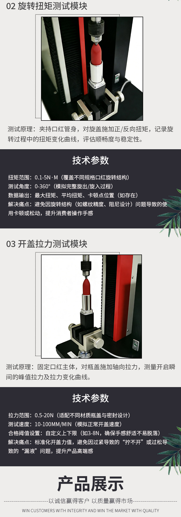 口紅綜合性能試驗(yàn)機(jī) 膏體抗斷測試 旋轉(zhuǎn)扭矩測試 開蓋拉力測試